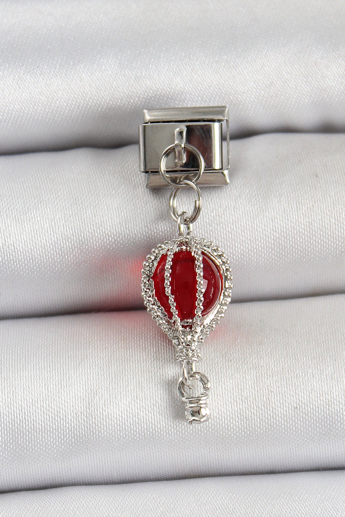 316L Çelik Gümüş Renk Kırmızı Uçan Balon Model Nomination Charm