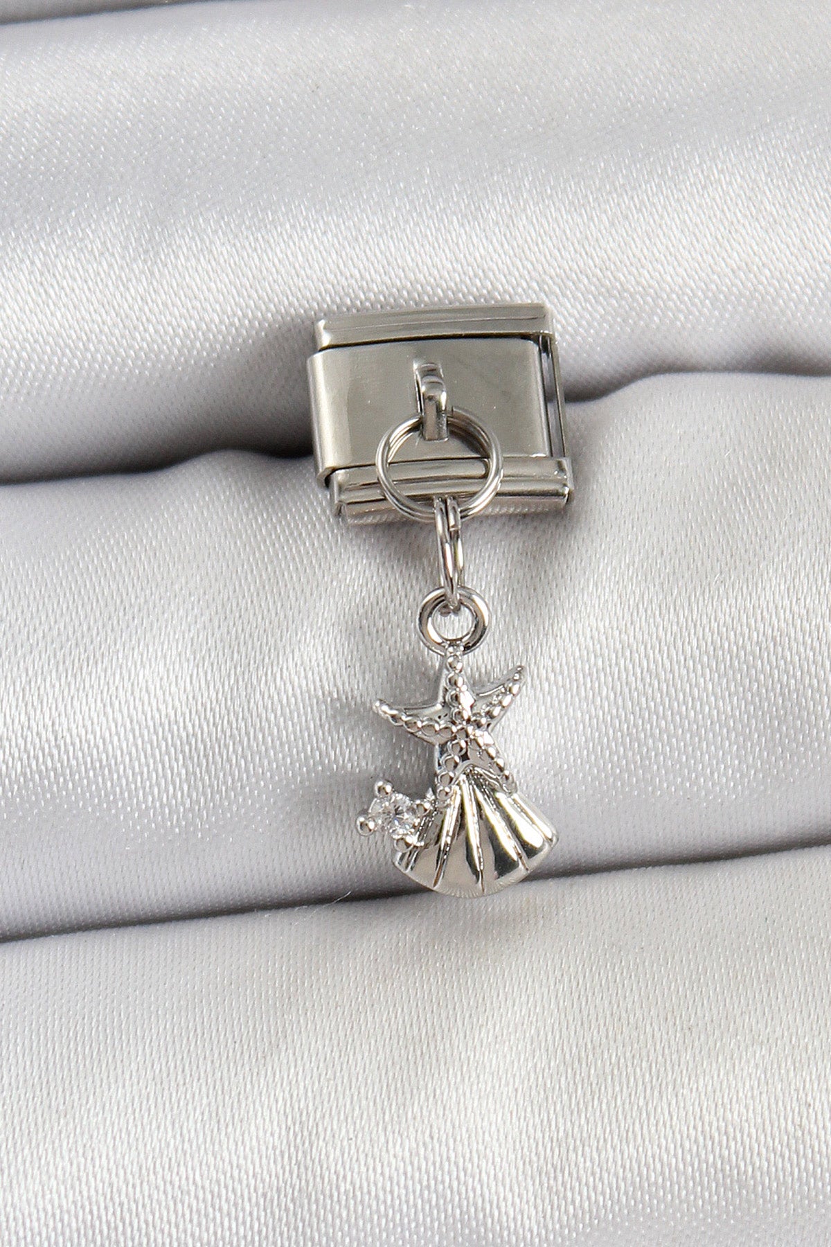 316L Çelik Sallantılı Zirkon Taşlı Deniz Yıldızı Ve İstiridye Model Gümüş Renk Nomination Charm