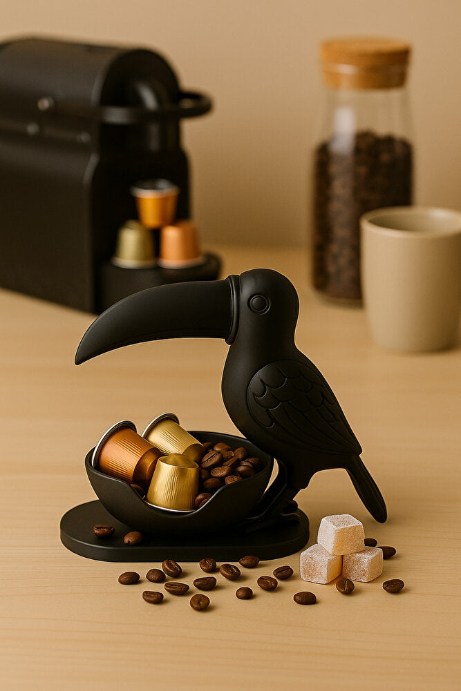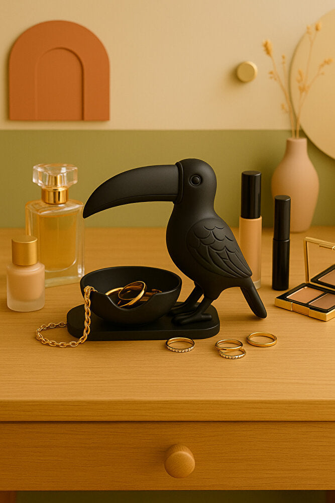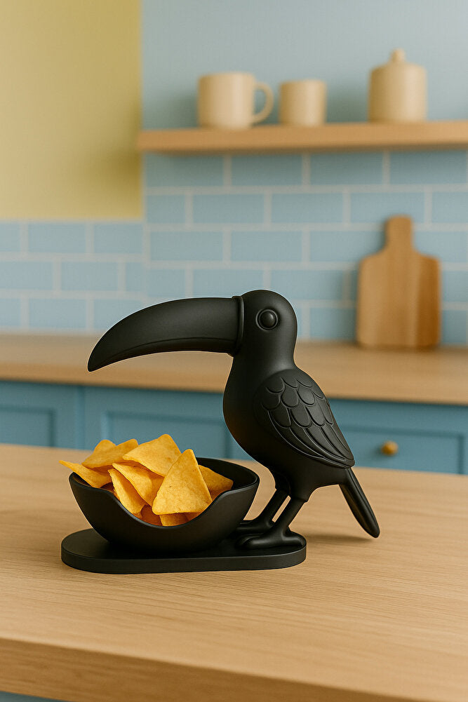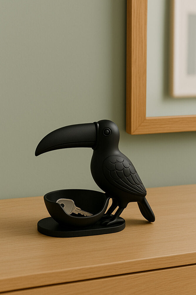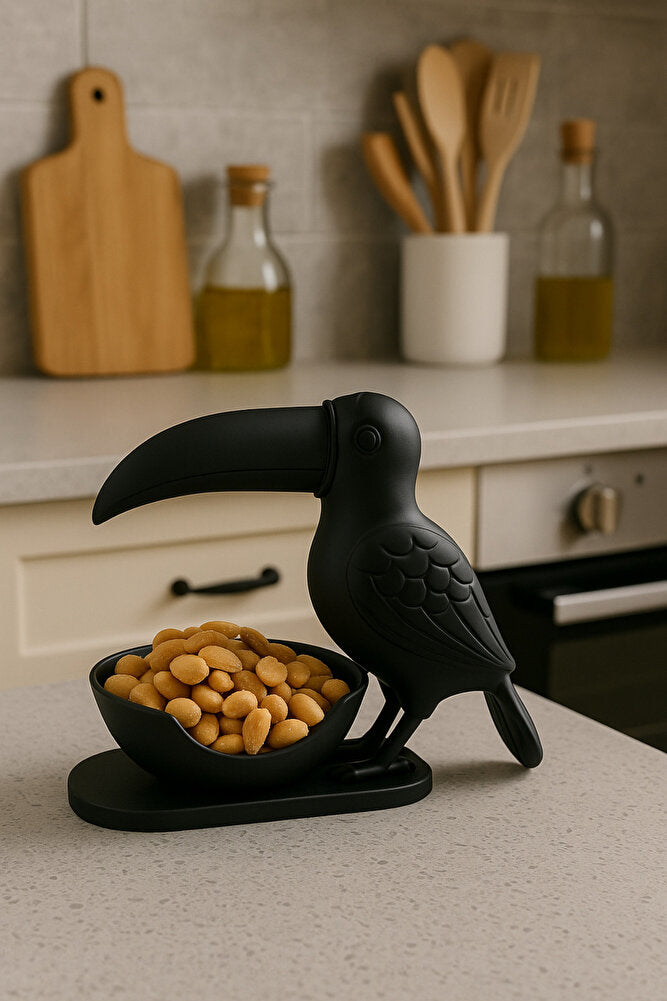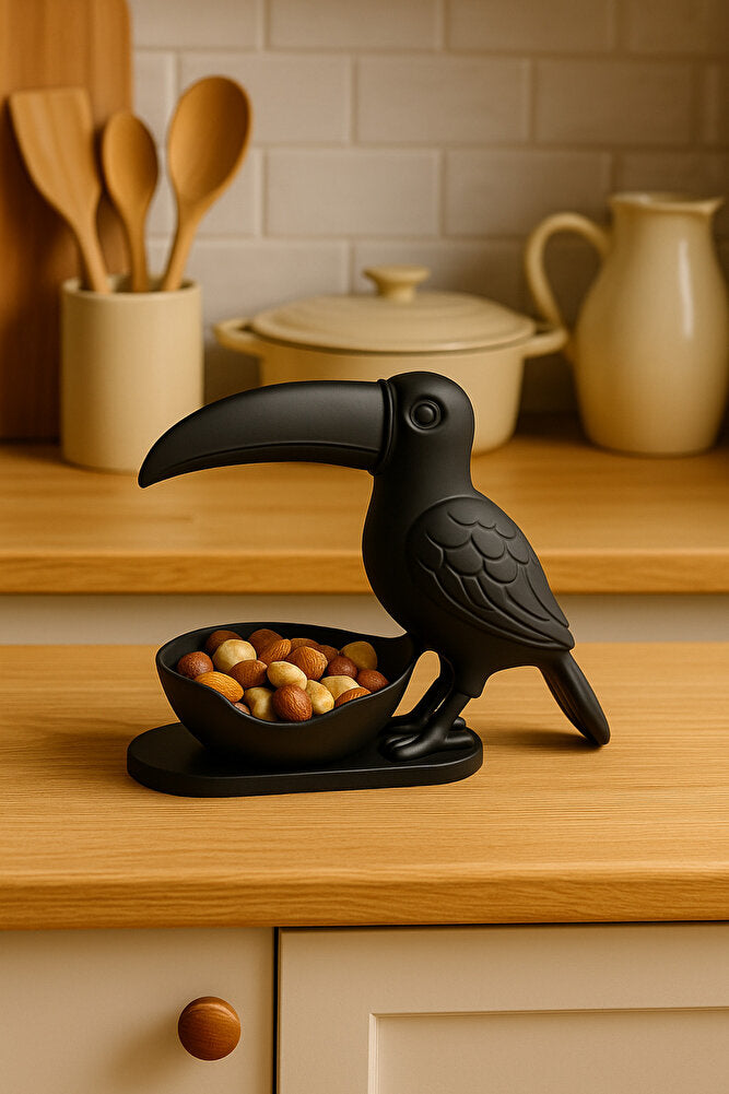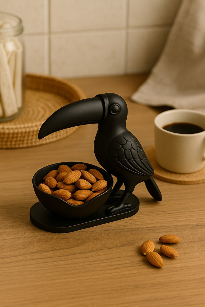 3D Siyah Kuş Figürlü Kuruyemiş, Kahve Yanı Sunum, Takı Organizeri, Anahtarlık Çok Amaçlı 15 x 12 cm