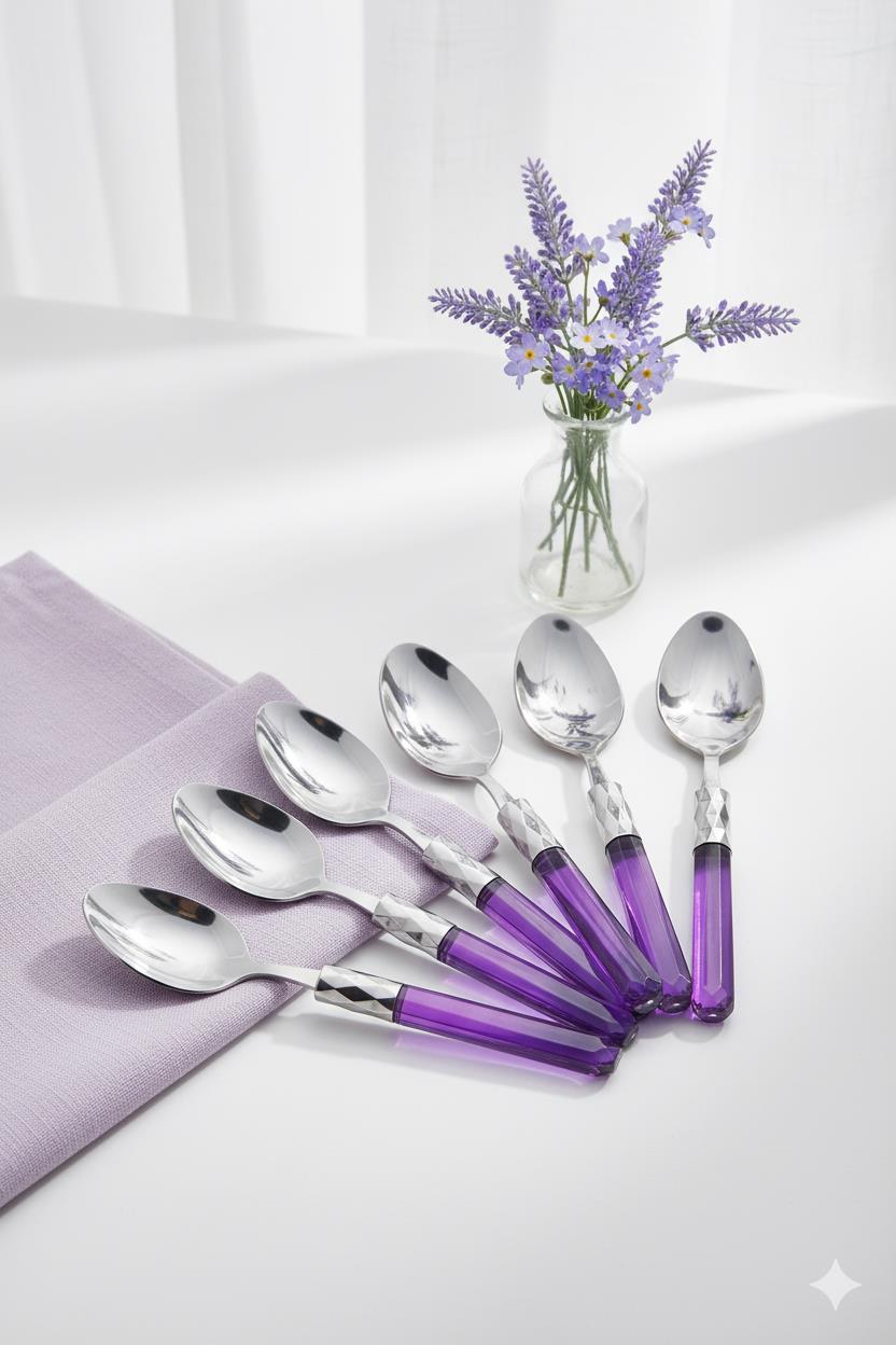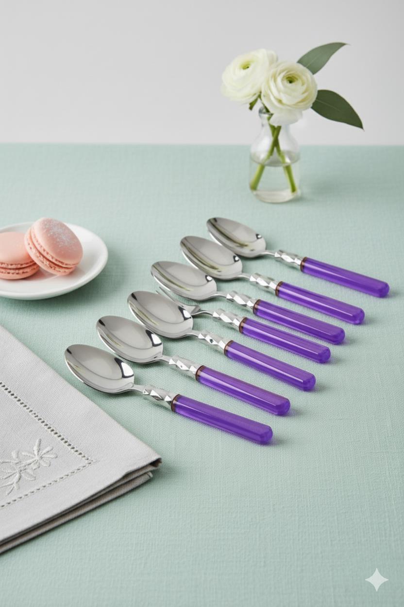 6’lı Paslanmaz Çelik Mor Tatlı Kaşığı Seti