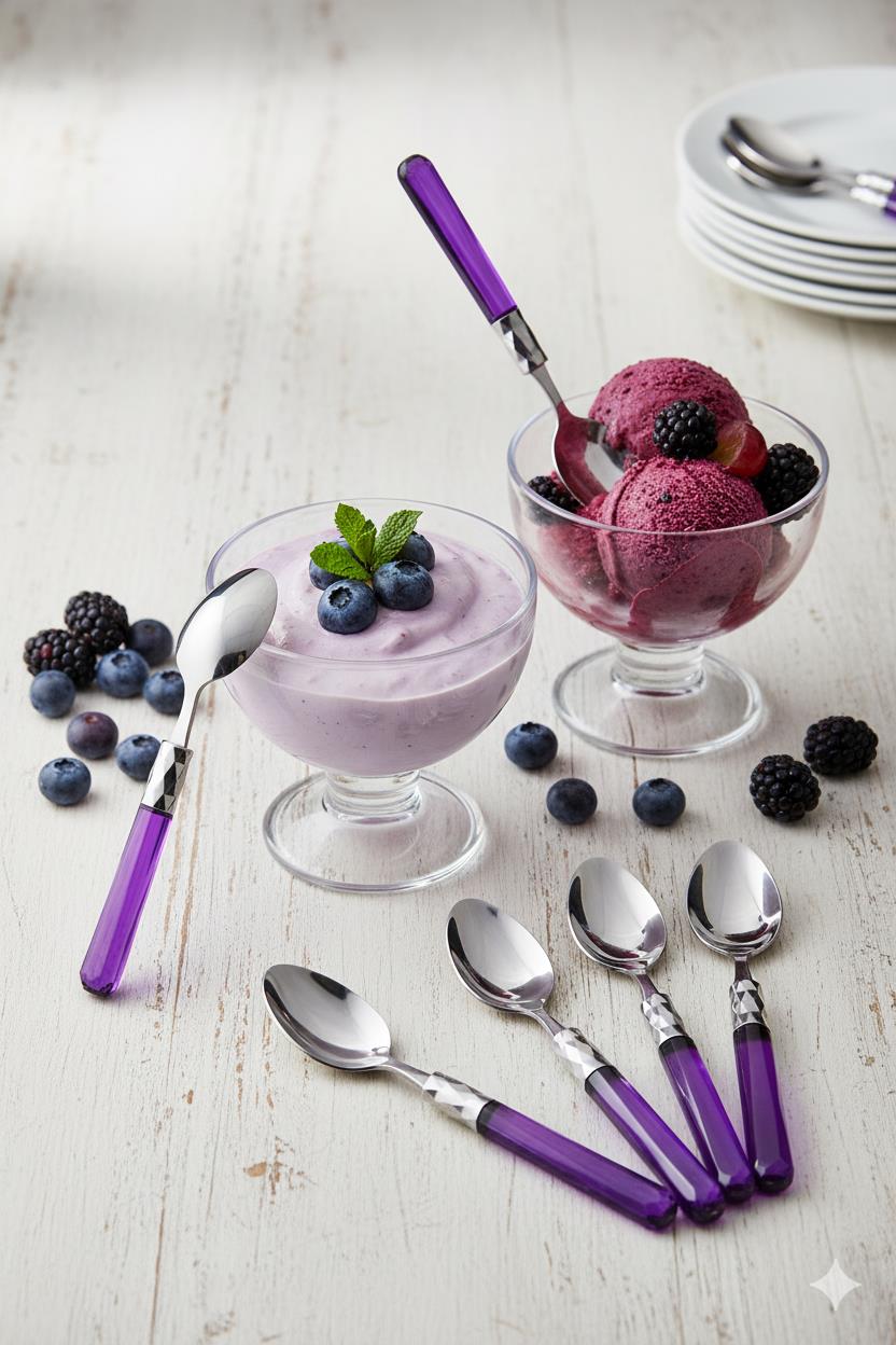 Şık mor rengiyle sofralara modern bir hava katan 6’lı paslanmaz çelik tatlı kaşığı seti, tatlı sunumlarınıza zarafet katar. Dayanıklı yapısı sayesinde uzun ömürlü kullanım sunar.