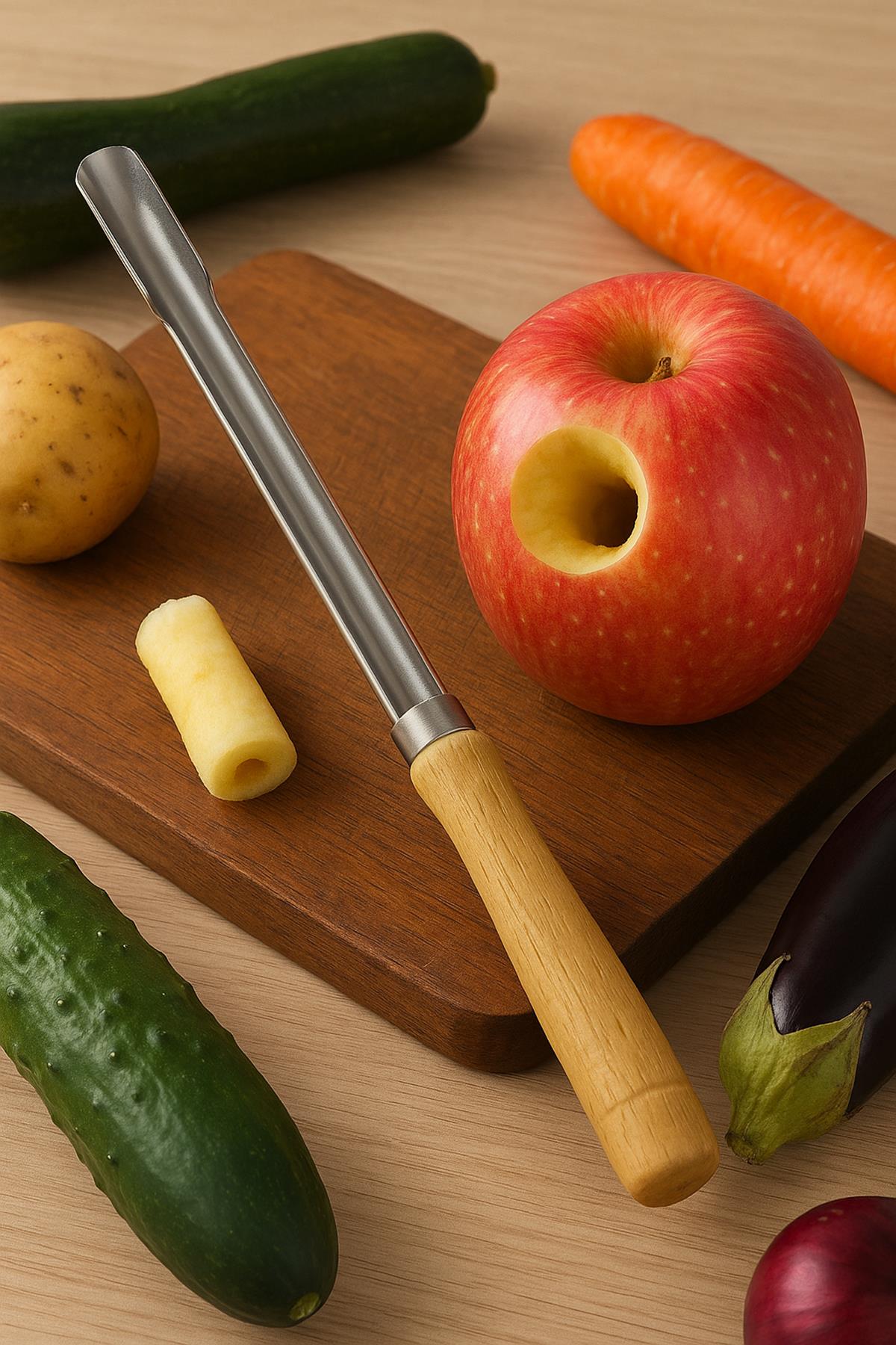 Ahşap Saplı Uzun Oyacak 24 cm Paslanmaz Çelik Sebze ve Meyve Oyacağı