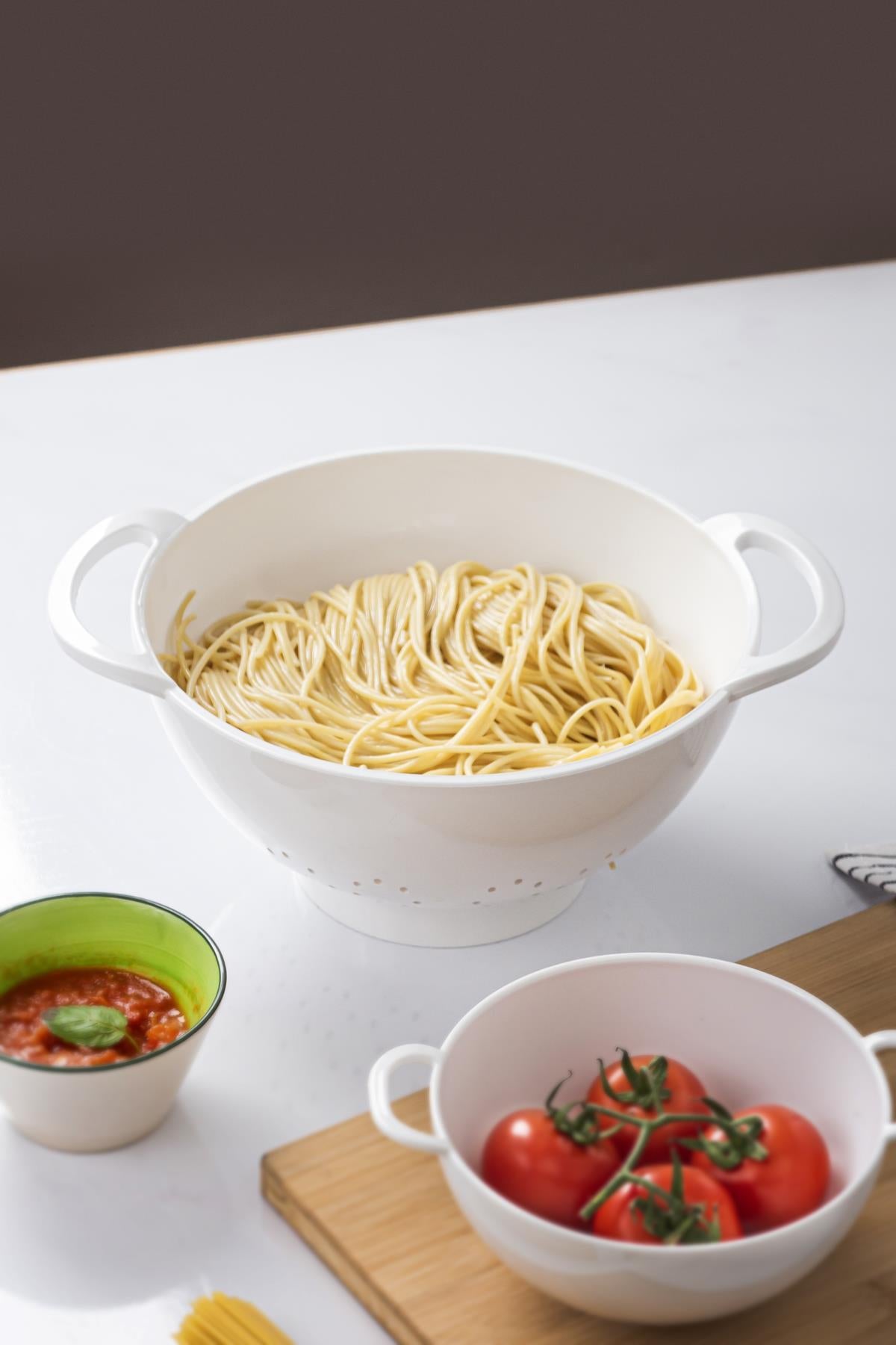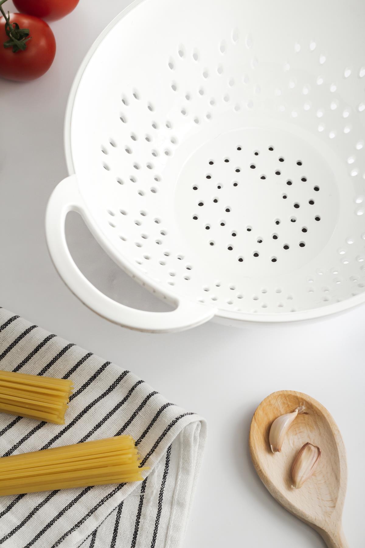 Akrilik Beyaz Makarna Süzgeçi & Sebze Meyve Süzgeçi