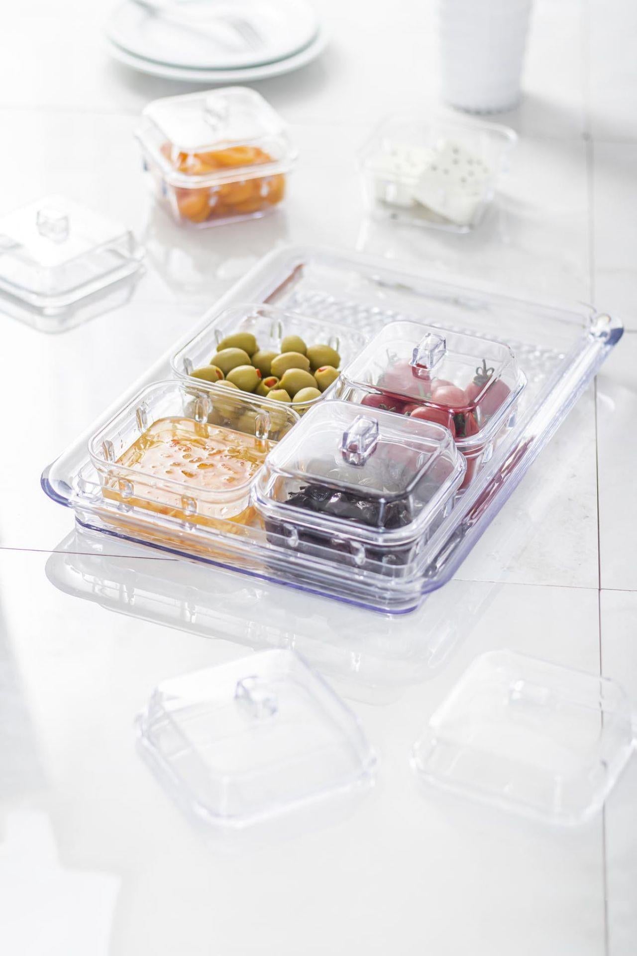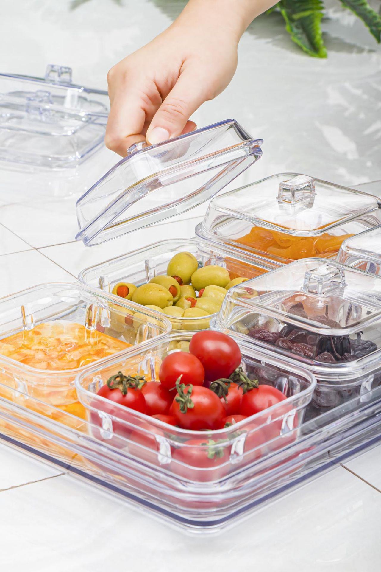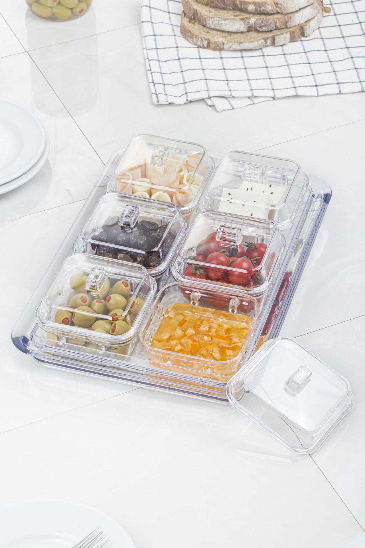 Kapakları sayesinde korkuların karışmasını engelleyen ve ürünlerin tazeliğini korumaya yardımcı 6 kaseli akrilik bölmeli kahvaltılık; masada düzen severlerin, pratik ve hızlı kahvaltı yapmak isteyenlerin en büyük tercihi.
