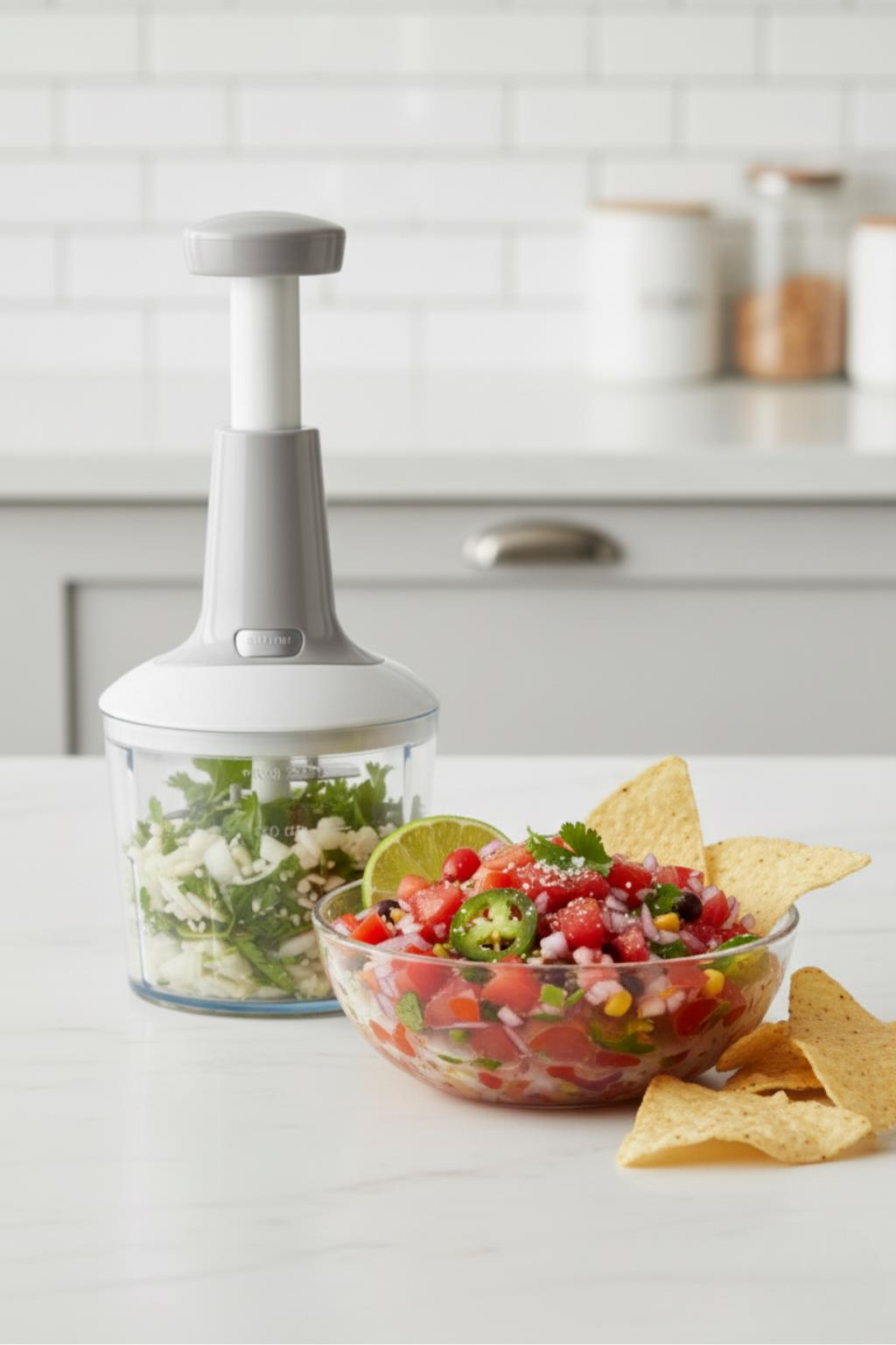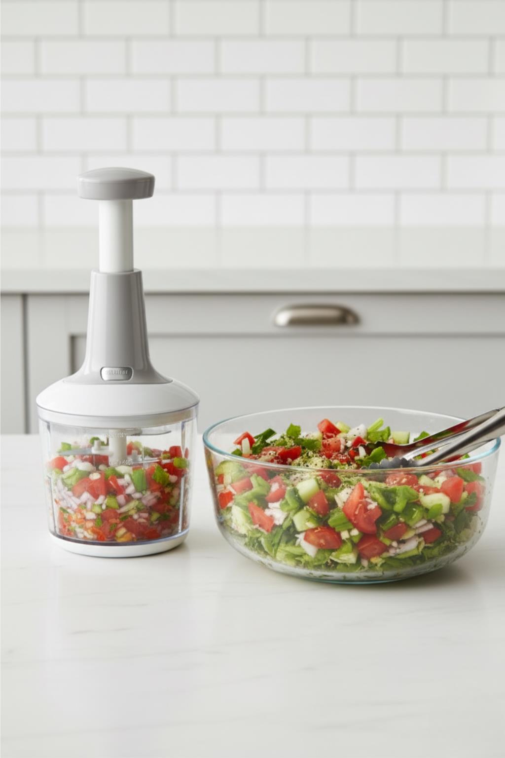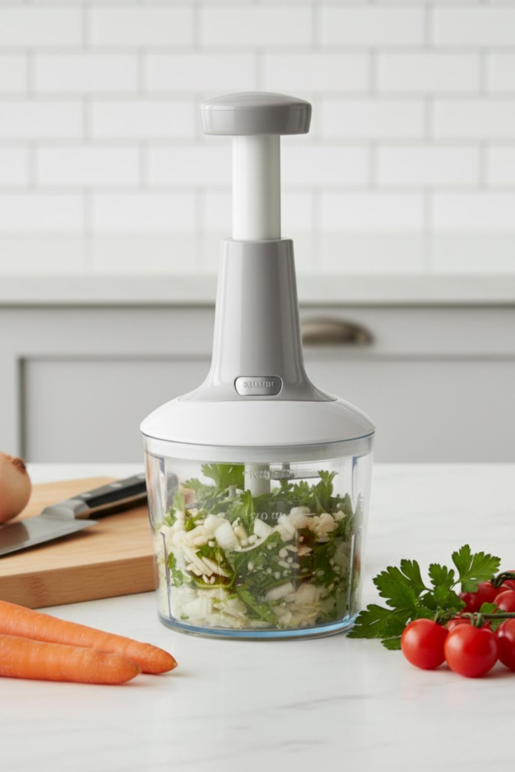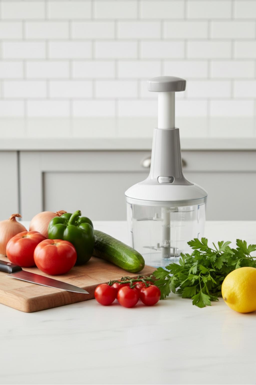 Basmali El Rondosu 1 Lt, günlük yemek hazırlıklarınızı hızlandıran pratik bir yardımcıdır. Soğan, sarımsak, yeşillik, domates ve meyveleri kolayca doğrayarak mutfakta zaman kazandırır. Elektrik gerektirmeyen basmalı sistemi ile güvenli ve hızlı kullanım sağlar.