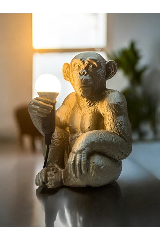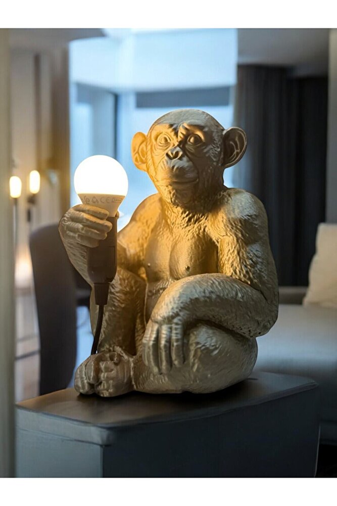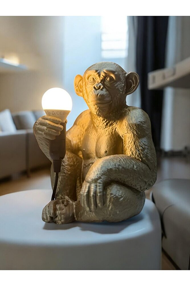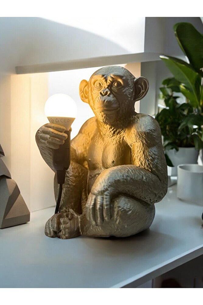 Bronz Renkli Maymun Tasarımlı Dekoratif Lamba Ve Gece Lambası (AMPUL HEDİYEDİR) 35 X 30 Cm