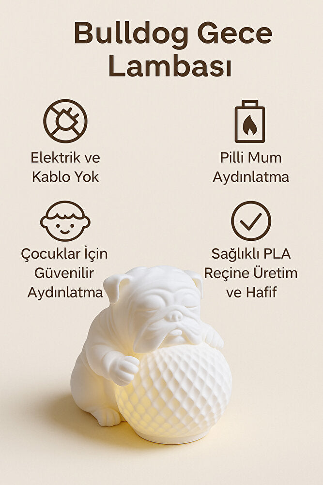 Bulldog Tasarımlı 3D Dekoratif Masa Lambası, Estetik Çocuk Odası Gece Lambası, Tealight 25 x 25 cm