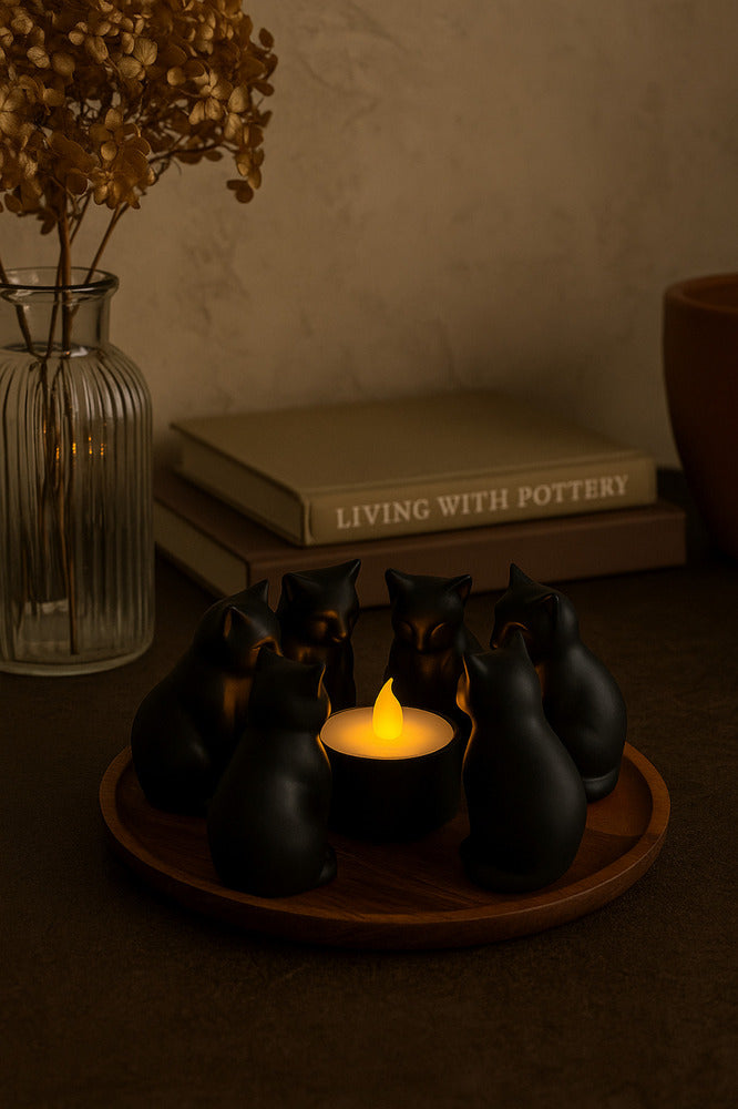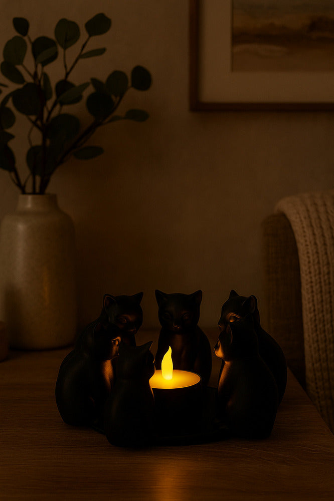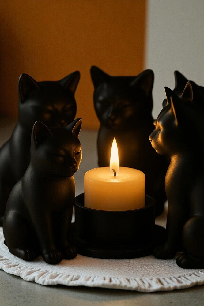 Dekoratif Kediler Ritüel Dinginlik Yoga Mumluk Biblo 14 X 10 Cm