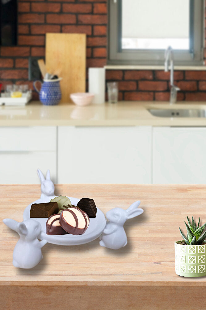 Dekoratif Şekerlik Sunumluk Tavşan Figürlü 15 Cm