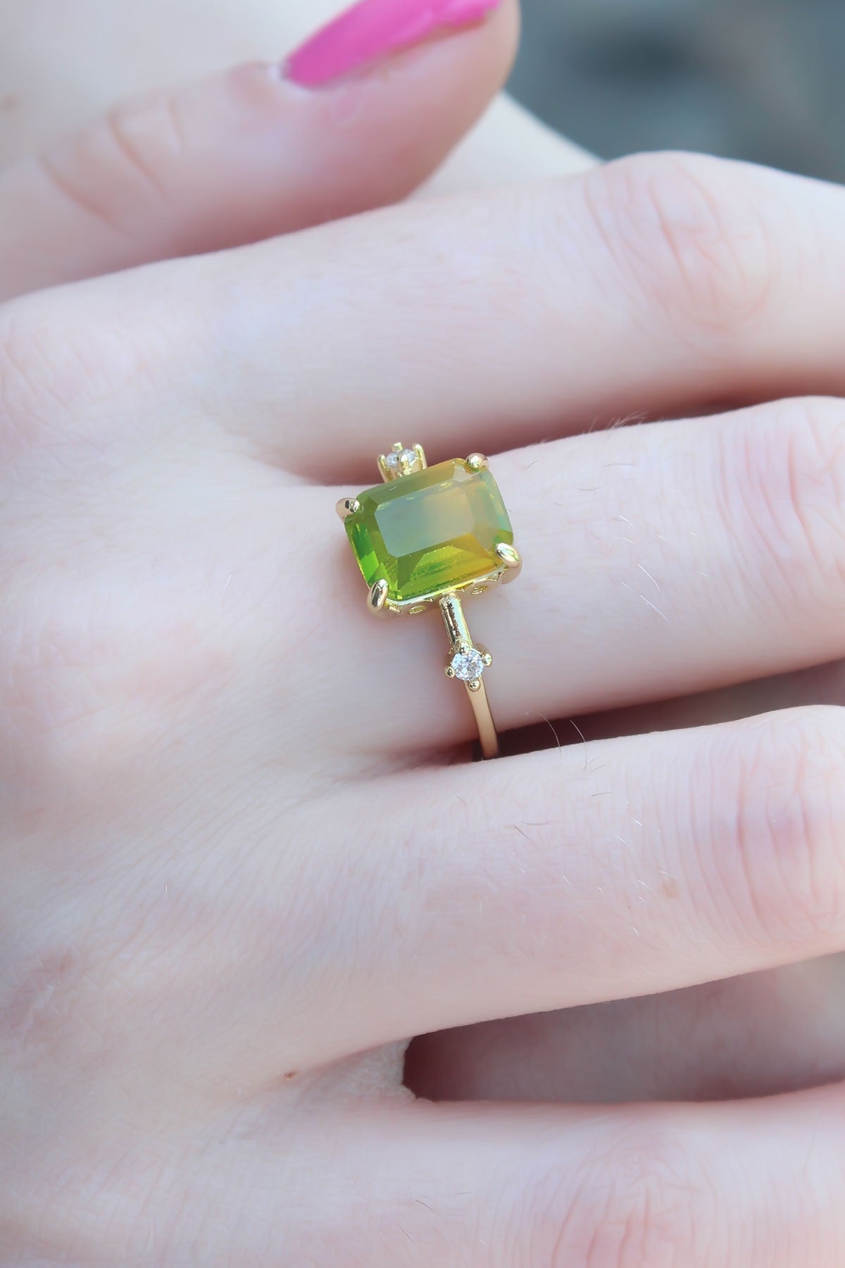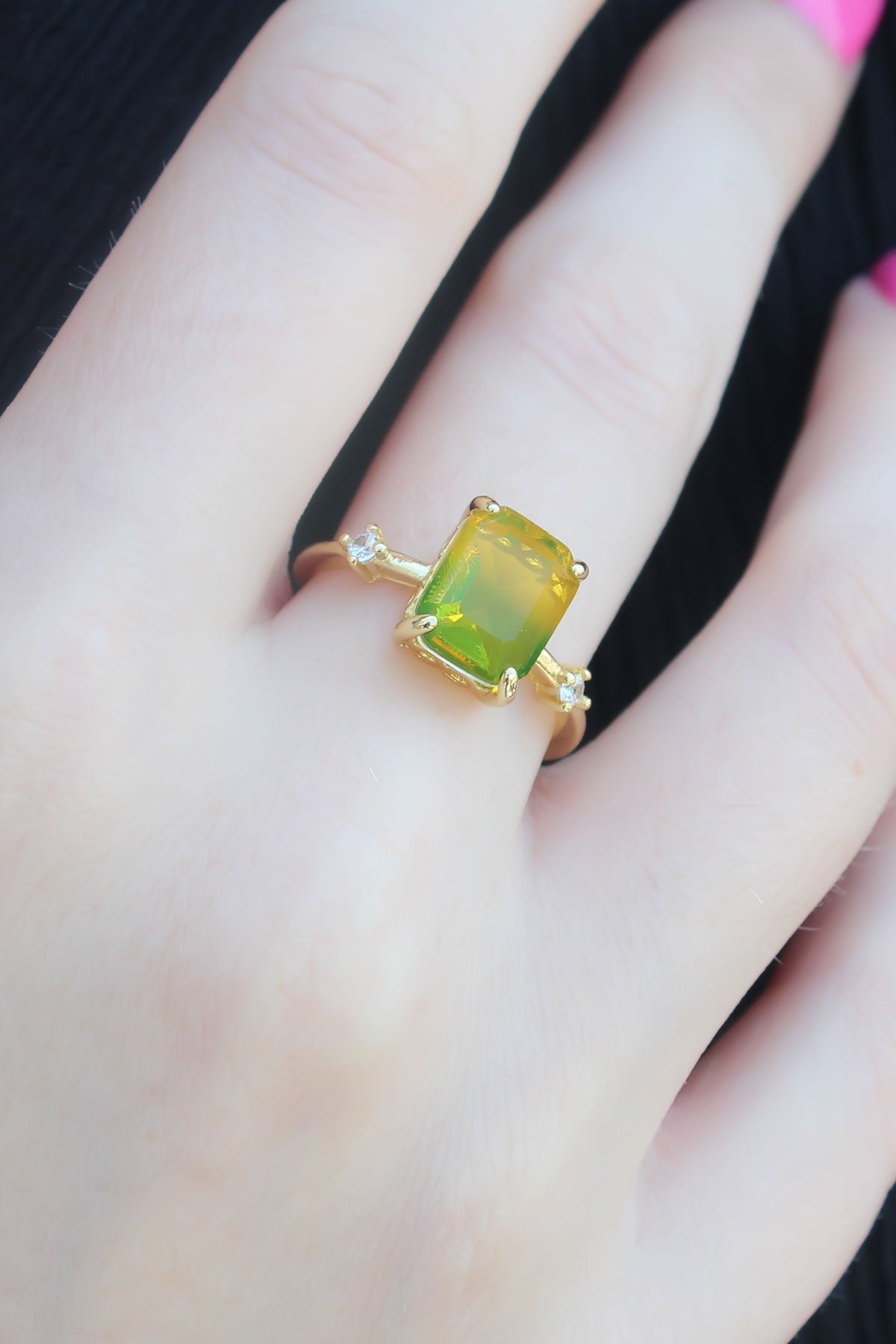 Gold Renk Renkli Zirkon Taşlı Pirinç Kadın Yüzük