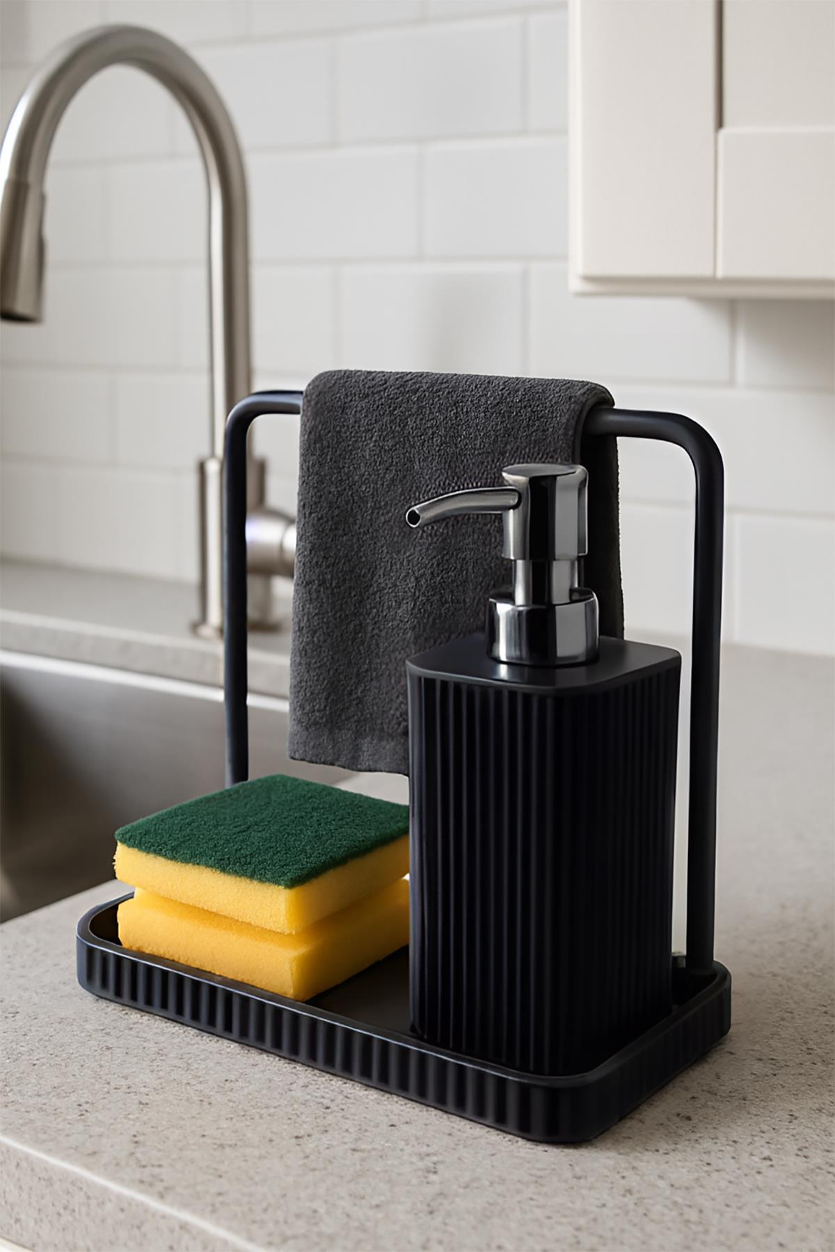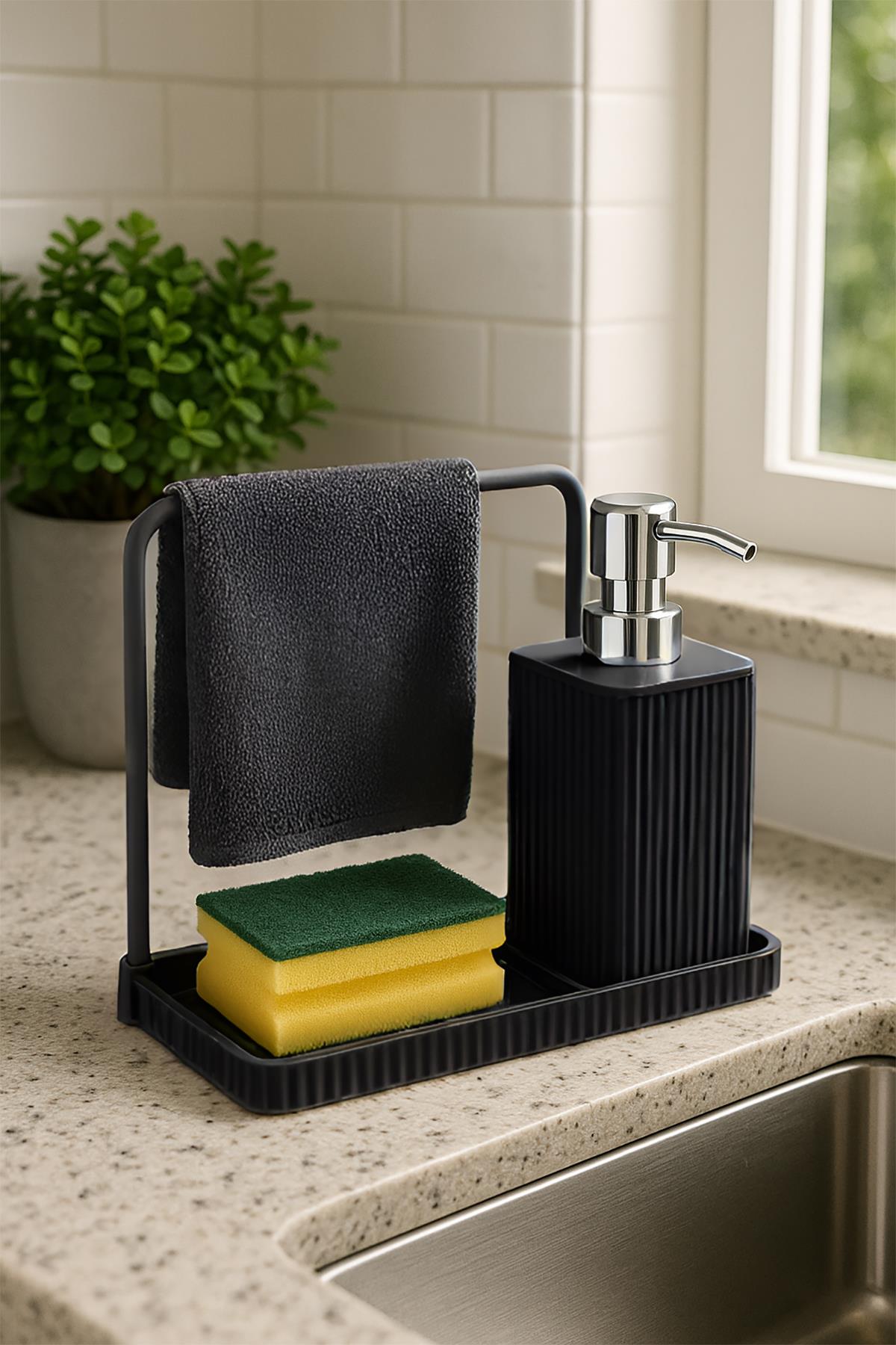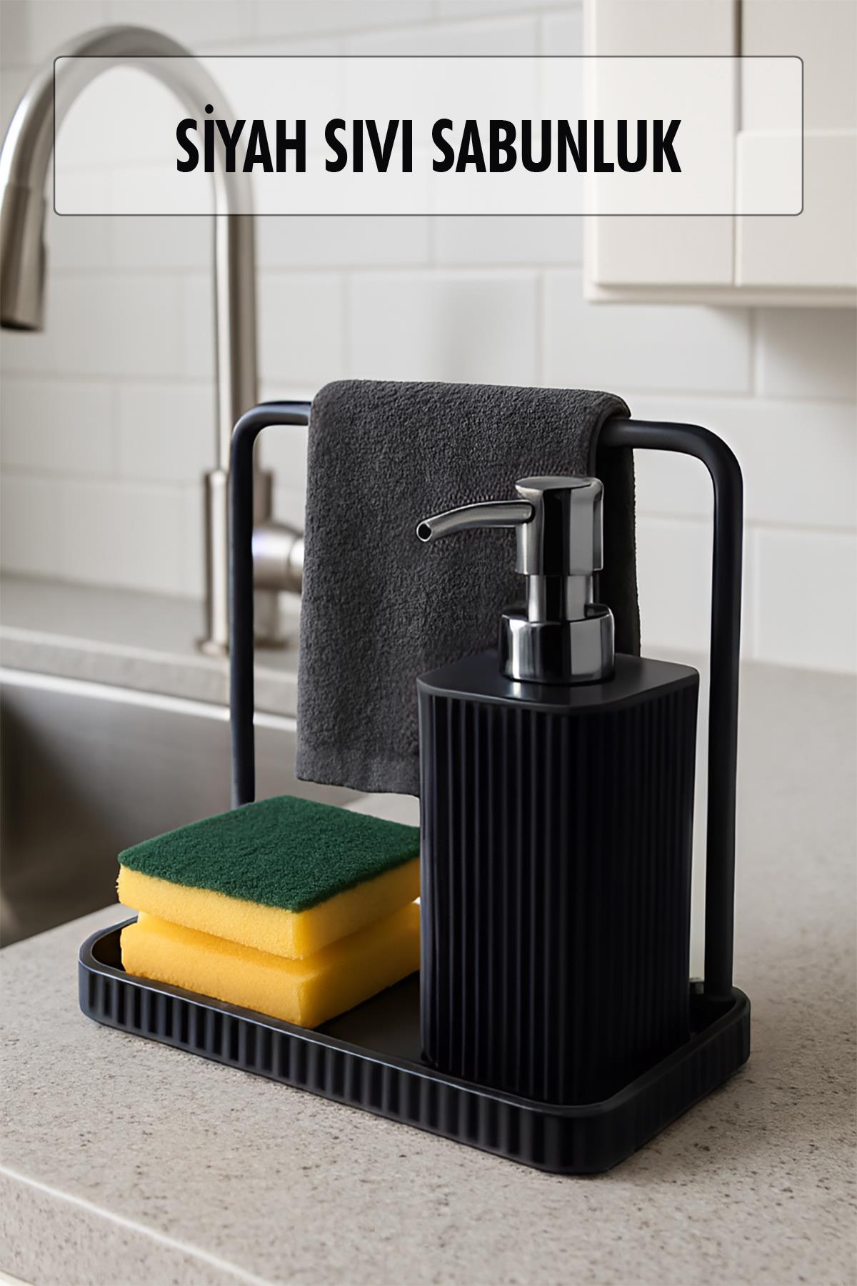 Havluluklu Sıvı Sabunluk & Havlu Asma Aparatlı Sıvı Sabunluk Siyah 400 ml