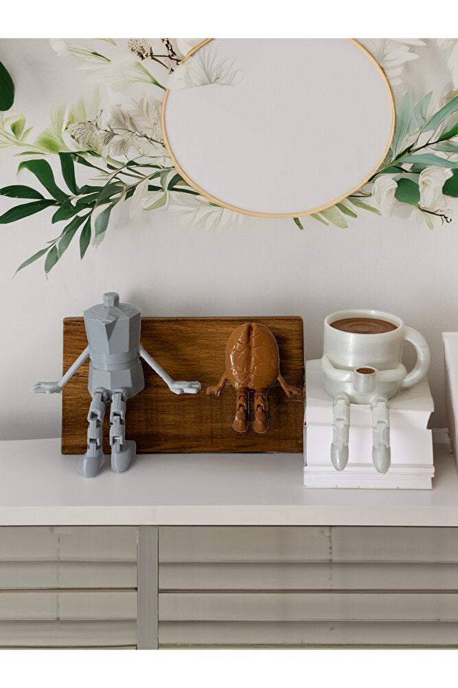 Kahve Köşesi Sevimli Biblo Seti 3lü, Kahve Çekirdeği, Kahve Kupası, Moka Pot, Coffee Set 10cm