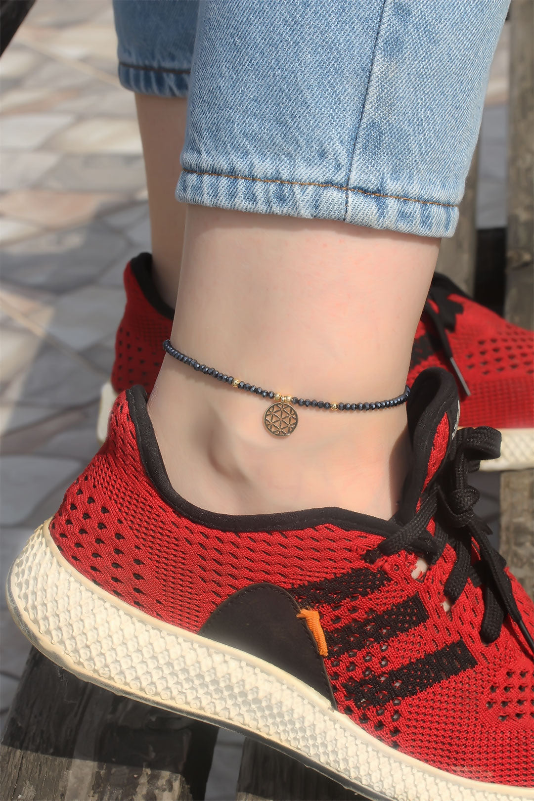 Metal Aksesuarlı Boncuklu Halhal