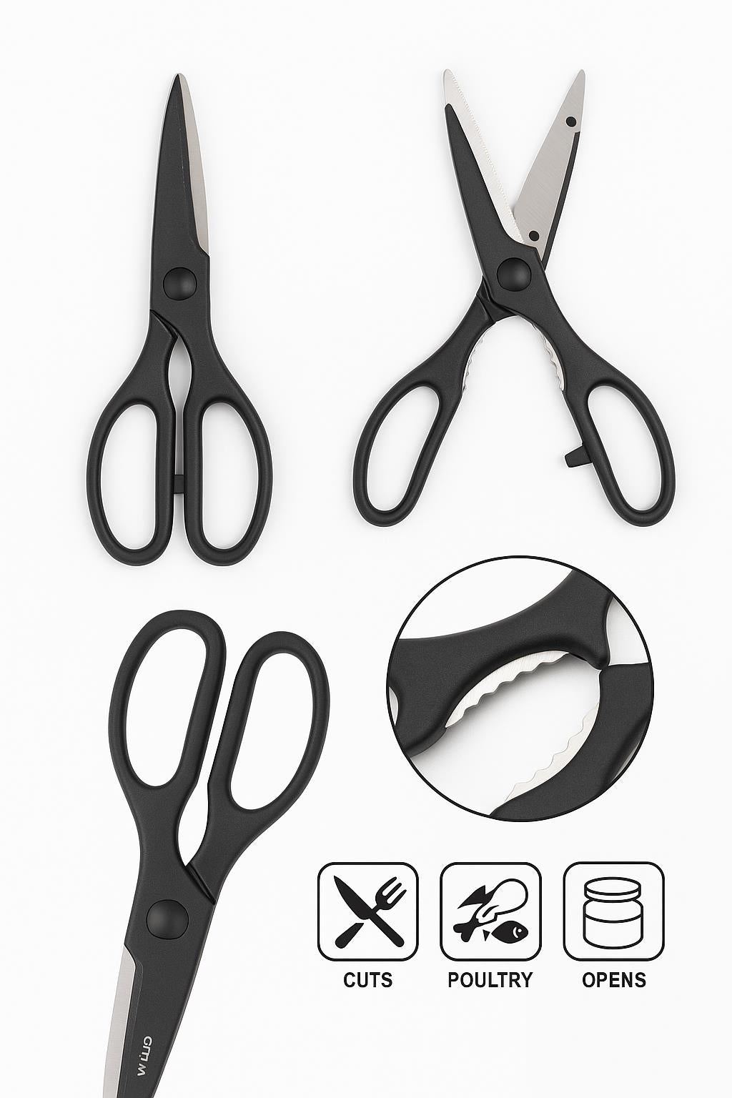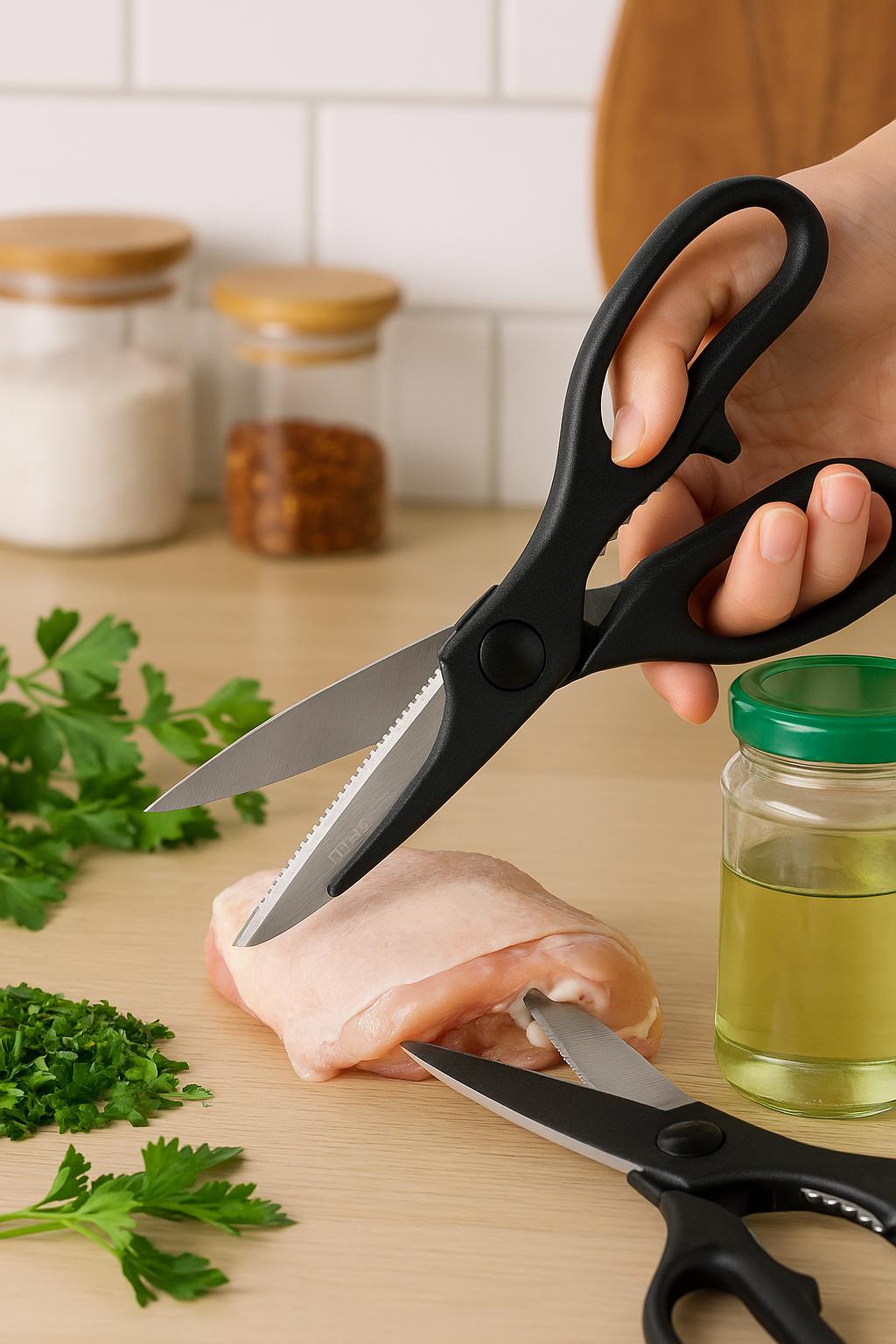 Dayanıklı paslanmaz çelikten üretilmiş mutfak makası, et, sebze, balık ve daha birçok ürünü kolayca kesmenize yardımcı olur. Ergonomik tasarımı sayesinde elinizde rahat tutuş sağlar ve mutfakta pratik çözümler sunar. Karışık renk seçenekleri stok durumuna göre gönderilmektedir.