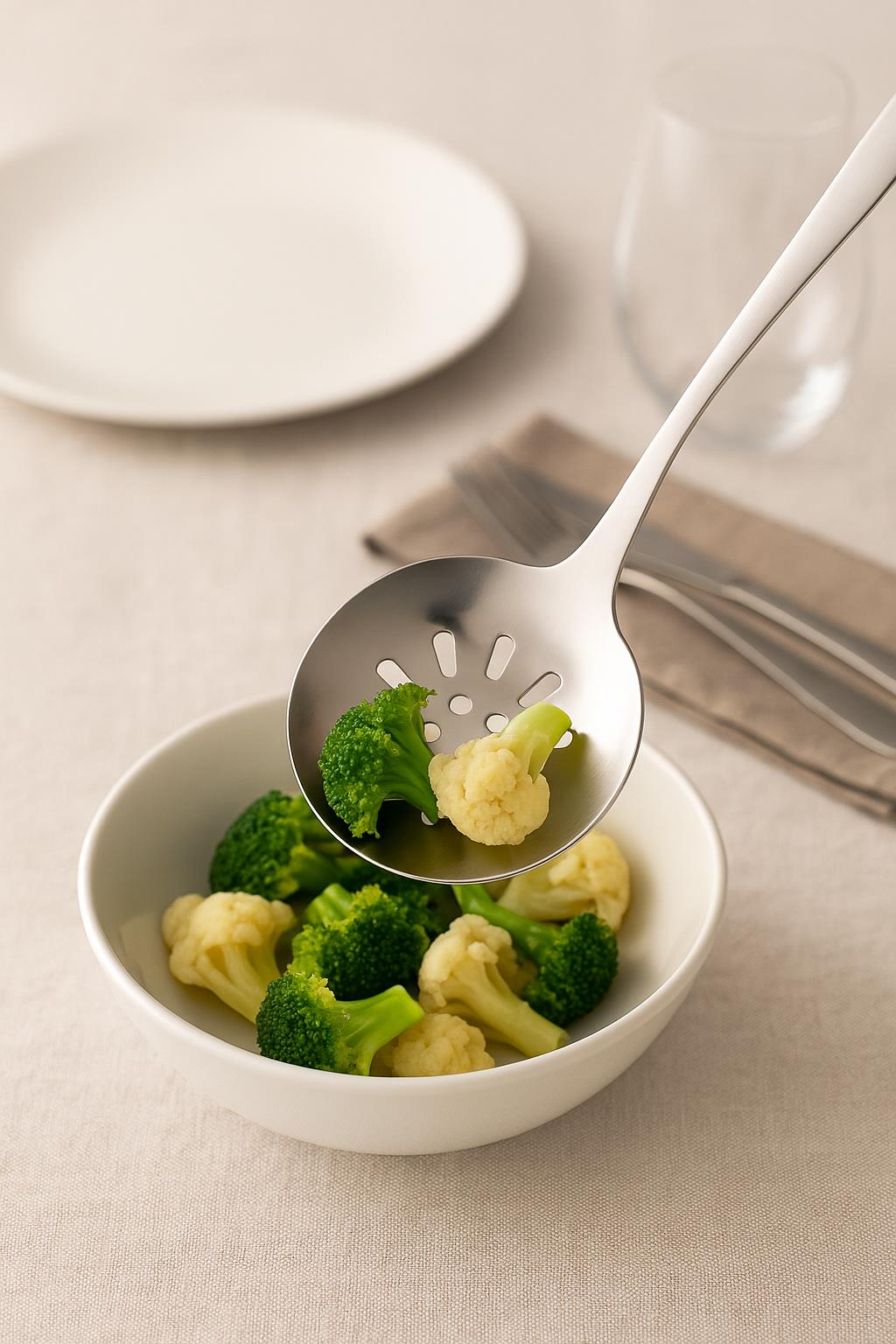 Dayanıklı paslanmaz çelikten üretilmiş servis kevgiri, yemek servisini kolaylaştıran pratik bir mutfak yardımcısıdır. Ergonomik yapısıyla hem evde hem profesyonel mutfaklarda kullanım için uygundur.