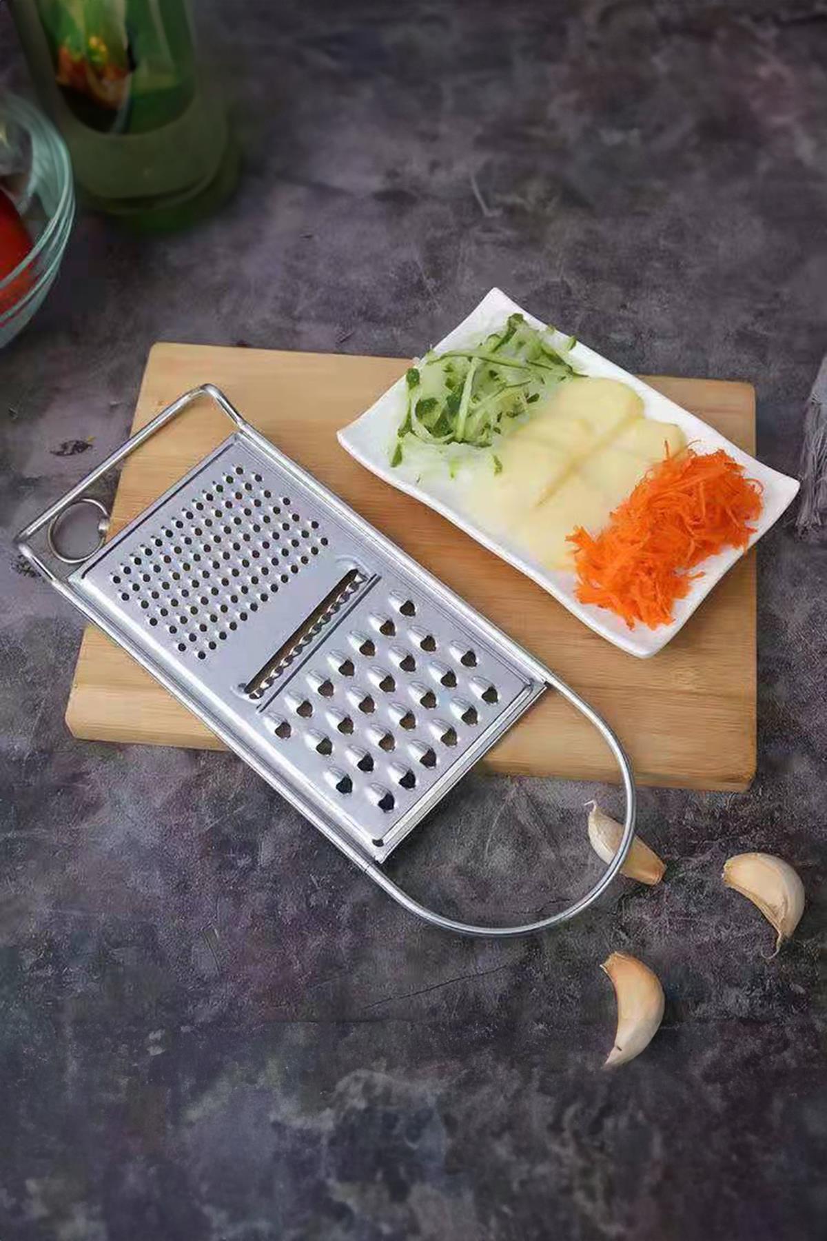 Dayanıklı paslanmaz çelikten üretilen tutmalı rende, ergonomik yapısıyla mutfakta güvenli ve kolay kullanım sağlar. Büyük boyutu sayesinde sebze ve meyveleri hızlıca rendelemenize yardımcı olur.