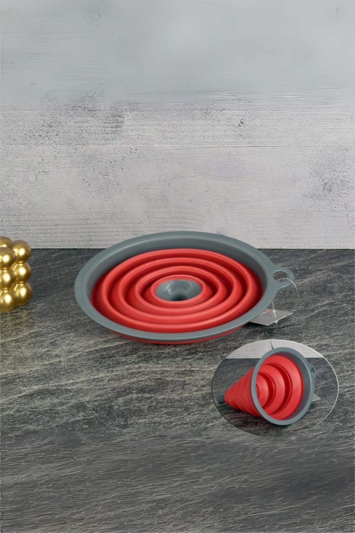 Katlanabilir tasarımı sayesinde yer kaplamayan kırmızı silikon huni, mutfakta pratik kullanım sağlar. Dayanıklı ve esnek yapısıyla uzun süre kullanabileceğiniz ideal bir mutfak yardımcısıdır.