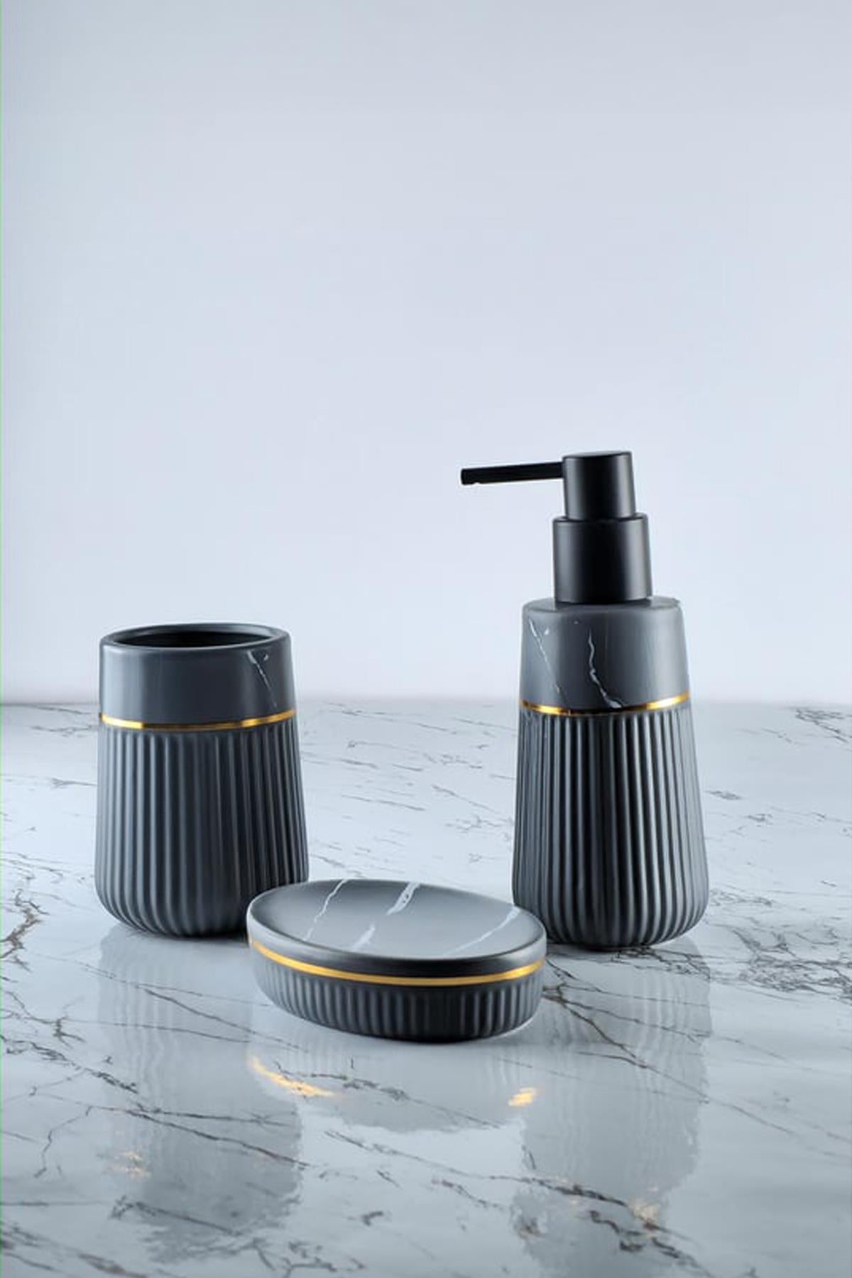 Siyah Mermer Desenli Seramik Banyo Seti 3 Parça
